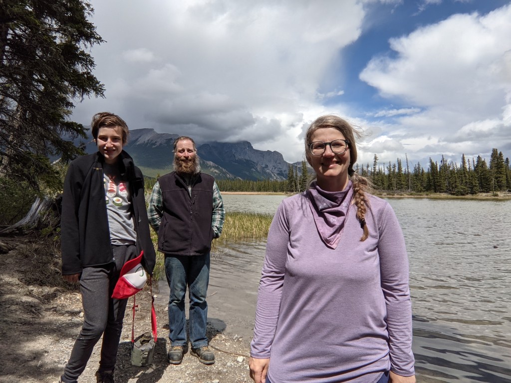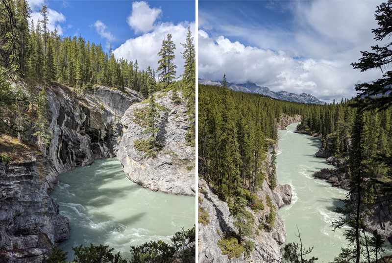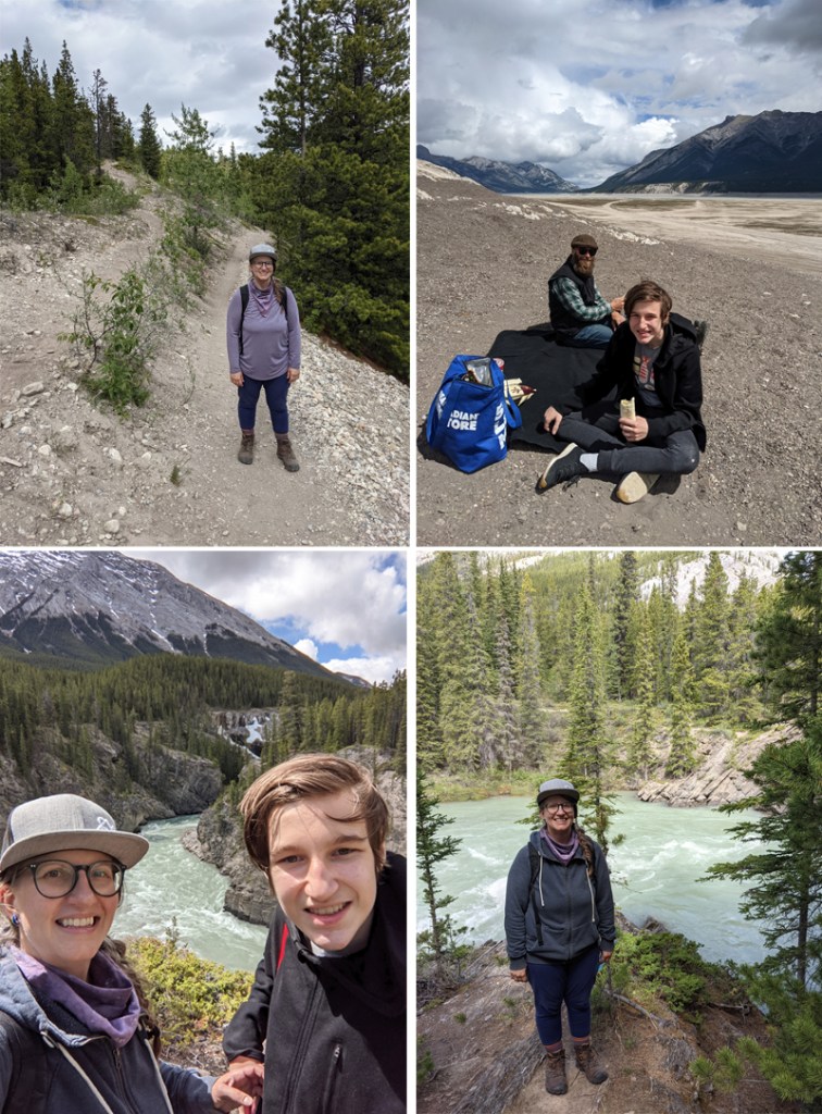 Both “trails” we tackled started where the Cline River meets Abraham Lake. First up was a trail from the Pinto Lake Staging Area on the south side. This one was the tougher of the two, and we faced a lot of steep inclines. The All Trails comments all stated “when faced with an intersection, take the trail that goes down”, which proved to be mostly handy. We didn’t find the waterfalls I was expecting, but we got some lovely canyon views.