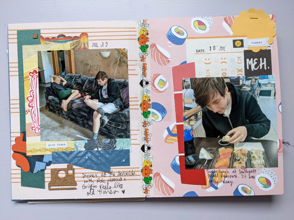 - Each page came together within a few days of the event, but I waited for ~10 days before printing photos (as I don’t have a photo printer at home). If I was worried I would forget the photo order, I added sticky notes with the event and the date. This also saved me time later when adding the photos back in.