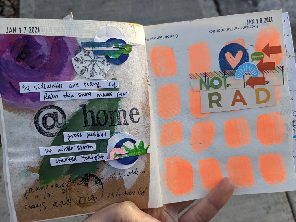 I have now finished two books of my own making. This flipthrough represents “Volume Two” and captures the time between December 3, 2021 and January 21, 2022. I created something in this book every single day during that period. Wowzas. It feels momentous, while also being simple and small. It showed me that I could start habits, and maintain them. With a little bit of effort. And I am immensely proud of myself. I haven’t done any Daily Pages since that last day in this book.