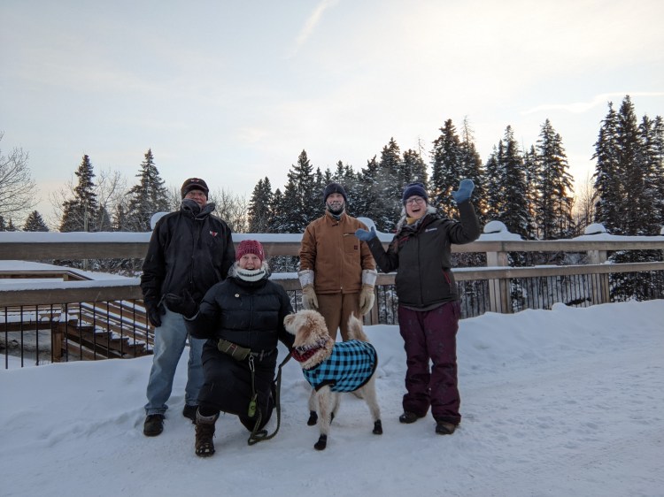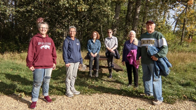 Our group has settled into a nice routine. We meet every Saturday morning at 9:00am at a trailhead in or around Edmonton. I choose the trailhead, but each participant chooses their pace and ends on their own terms. Our hikes seem to naturally wrap up for everyone around the 1 hour mark. This is an open walking group, and accessible to all ages and abilities. Due to the nature of the “marketing”, the hikers are mostly my family members, a work mate, and a few of my best friend’s friends.