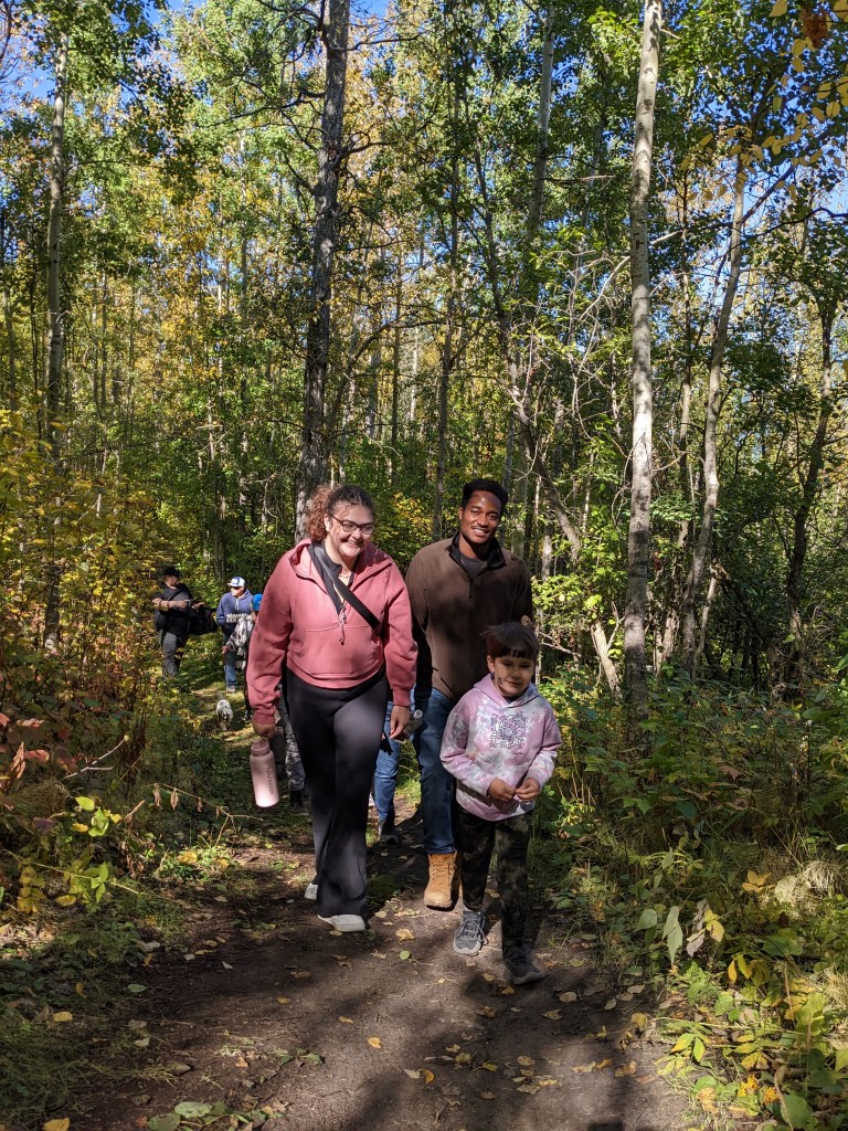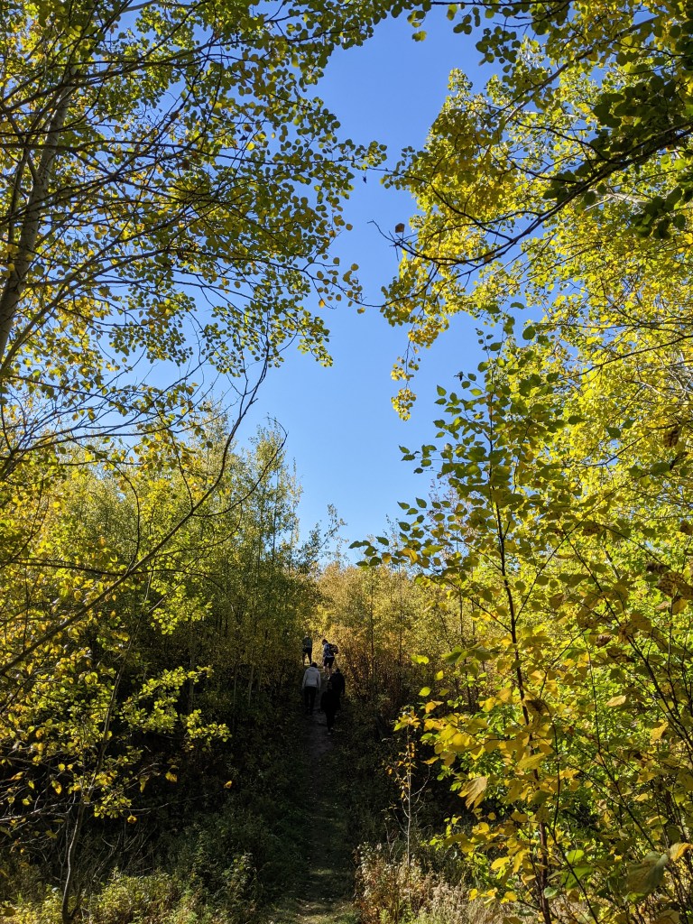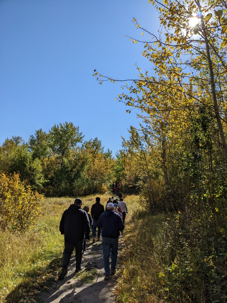 Our trail choice this year was Moss Lake Detour. Which is a shorter loop within the Moss Lake Trail. Mostly treed, there aren’t any views except for one section where you walk alongside a lake. We saw a lot of ducks, and beaver activity, but no other animals on this trail. This is outside of the safety zone, so the potential to see some larger animals – deer, moose, bison, bear – is there. I included a bit of safety talk in the introduction to bring the point home. But it wasn’t needed this time out. Chatting with folks throughout the day, most had seen some plains bison grazing by the road on the way in. Watching a 600kg beast eat their dinner is super cool from the safety of your car. But not if you come upon them on a trail with only your wits to protect you!