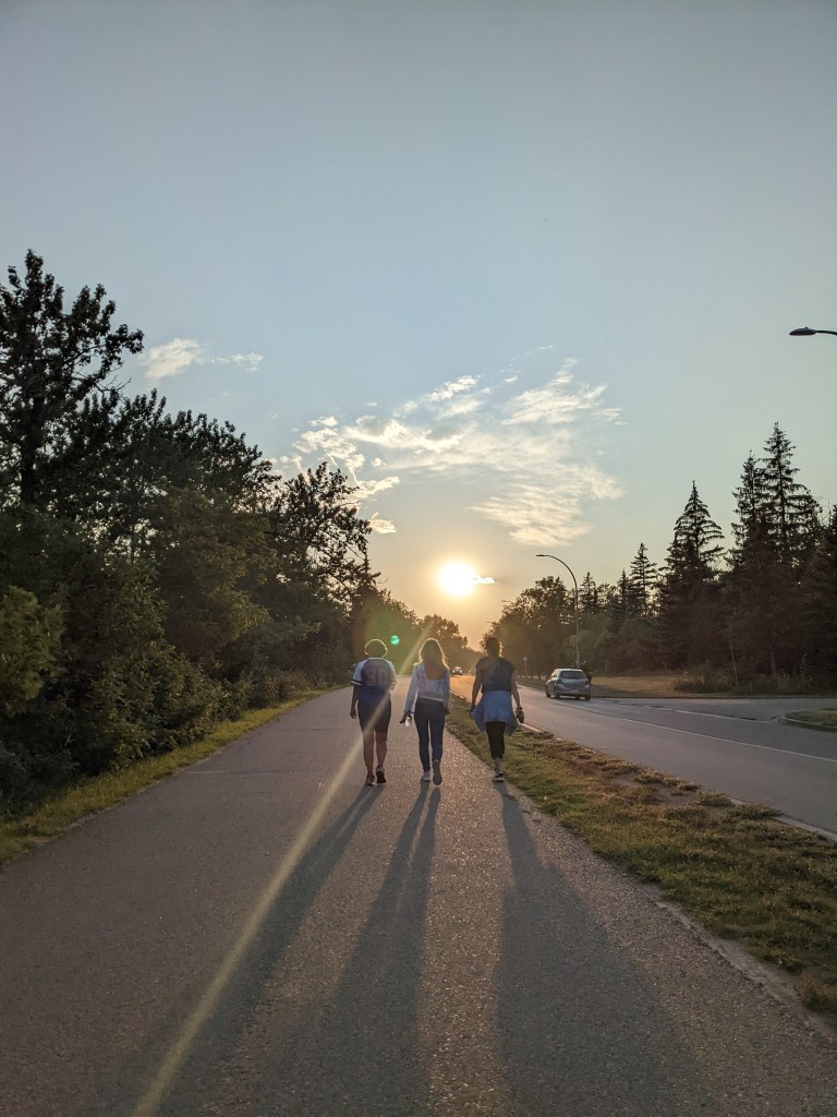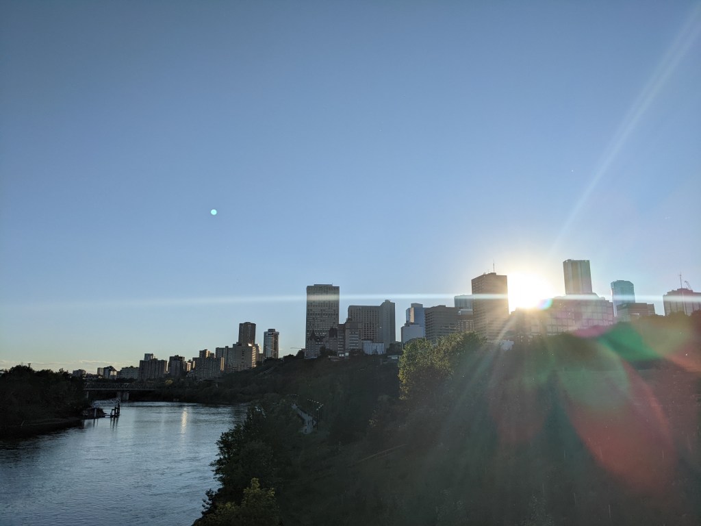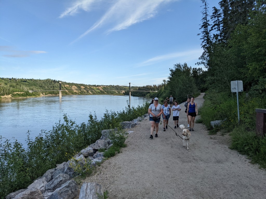 The gauzy, golden, end of the day in Edmonton is a spectacular time to get outside and explore the trails. This summer, Not ladylike Hikes changed up our routine and came together on Sunday evenings at 7:0pm. This gave folks who struggle with early AM on a weekend the opportunity to join in. And it offered us a chance to see Edmonton in a different – sunset – light.