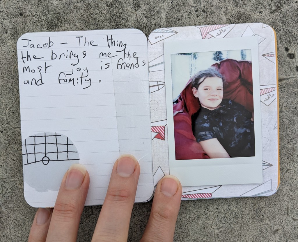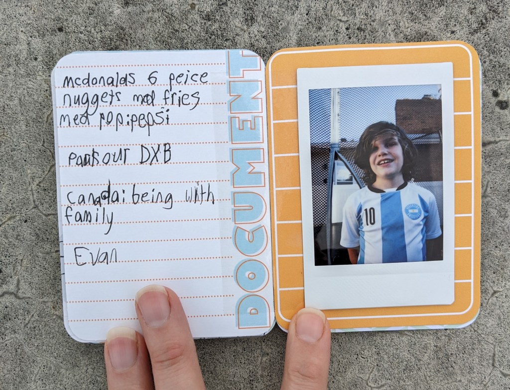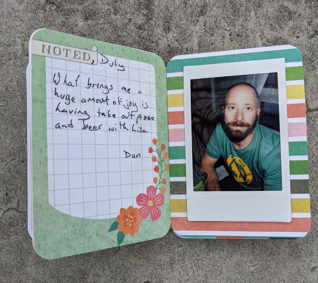 The camera is also an important aspect. I’ve written about it before, but I’ll say it again: “I have been using our Instax instant camera in order to simplify the project, and ensure it gets completed in a timely fashion.” (October 2021) I also personally really like the appearance of the Instax print. If you don’t have an instant camera, use what you have, and print the photos where it is most convenient for you.