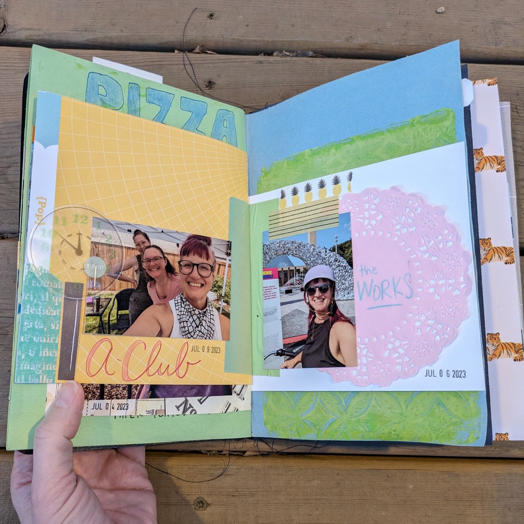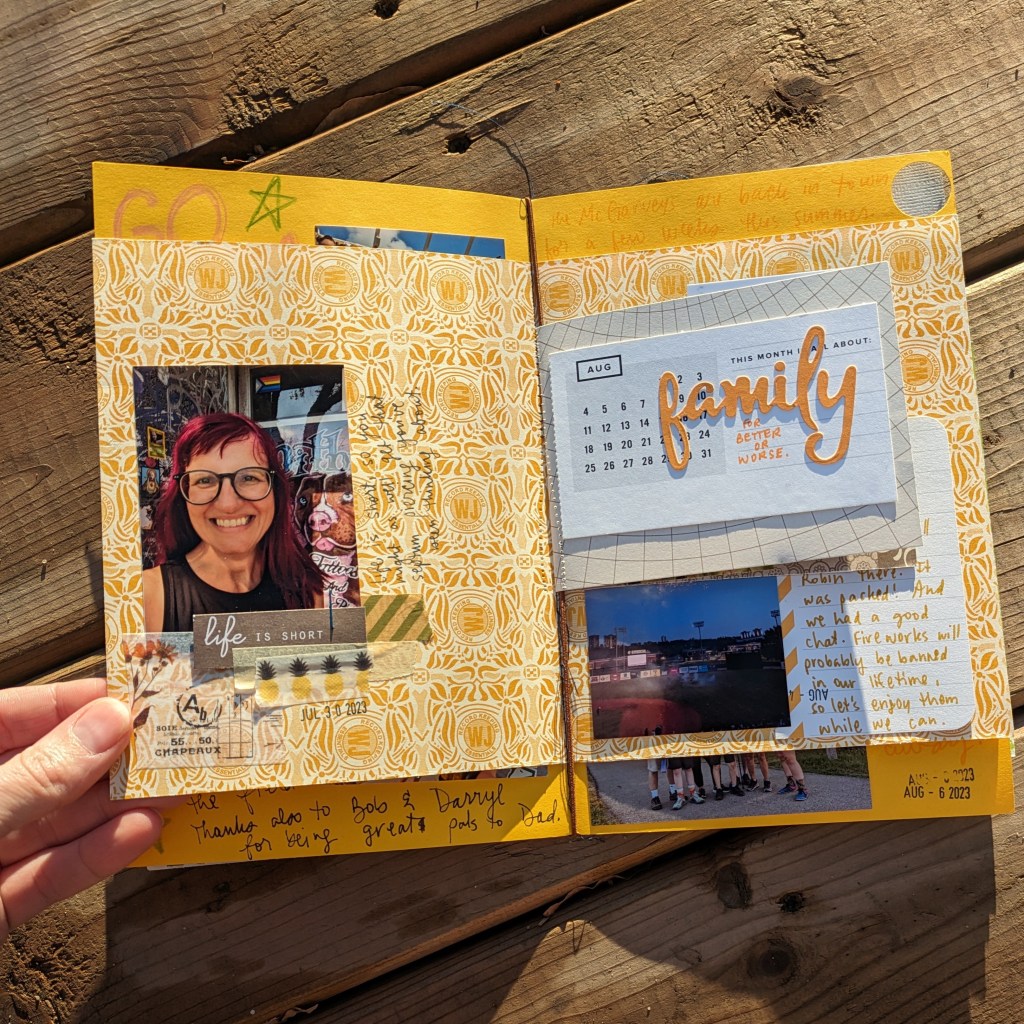 The first month of my summer scrapbook is usually so perfect, and matching, and lovely. While the last month involves an assembly-line of glue, photos, and scissors. It’s perfectly reasonable to change up your process, supplies, or time as your summer (year) progresses. Even if you’re creating at every opportunity, you might not have as much opportunity one month. That’s called life, and it’s annoying, but it’s true.