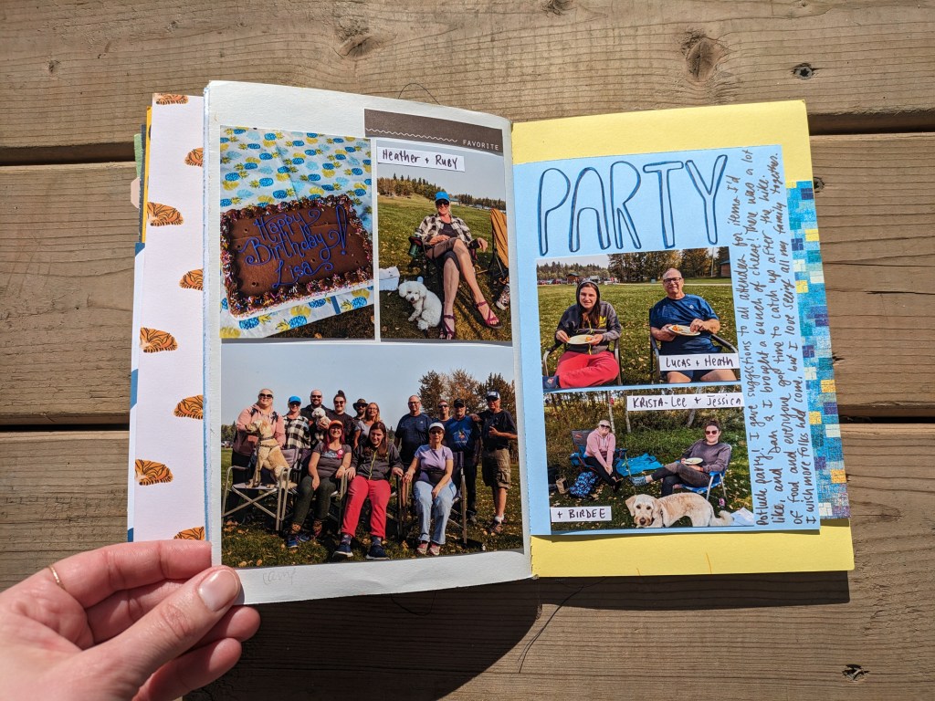 - Decide ahead of time what “done” looks like and stick to it. For me the priority is that I have photos with dates in there, and at least a sentence about what is happening in that photo.