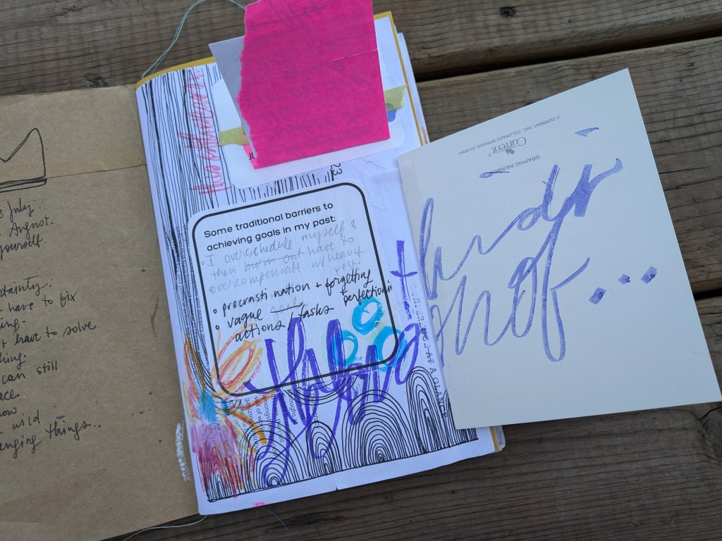 I don’t think that’s really a “theme”, but it has been helpful to have all of the same supplies on hand to pull from. Less work for my brain, deciding on this stuff, so I can focus on journaling my emotions, learnings, goals, etc.