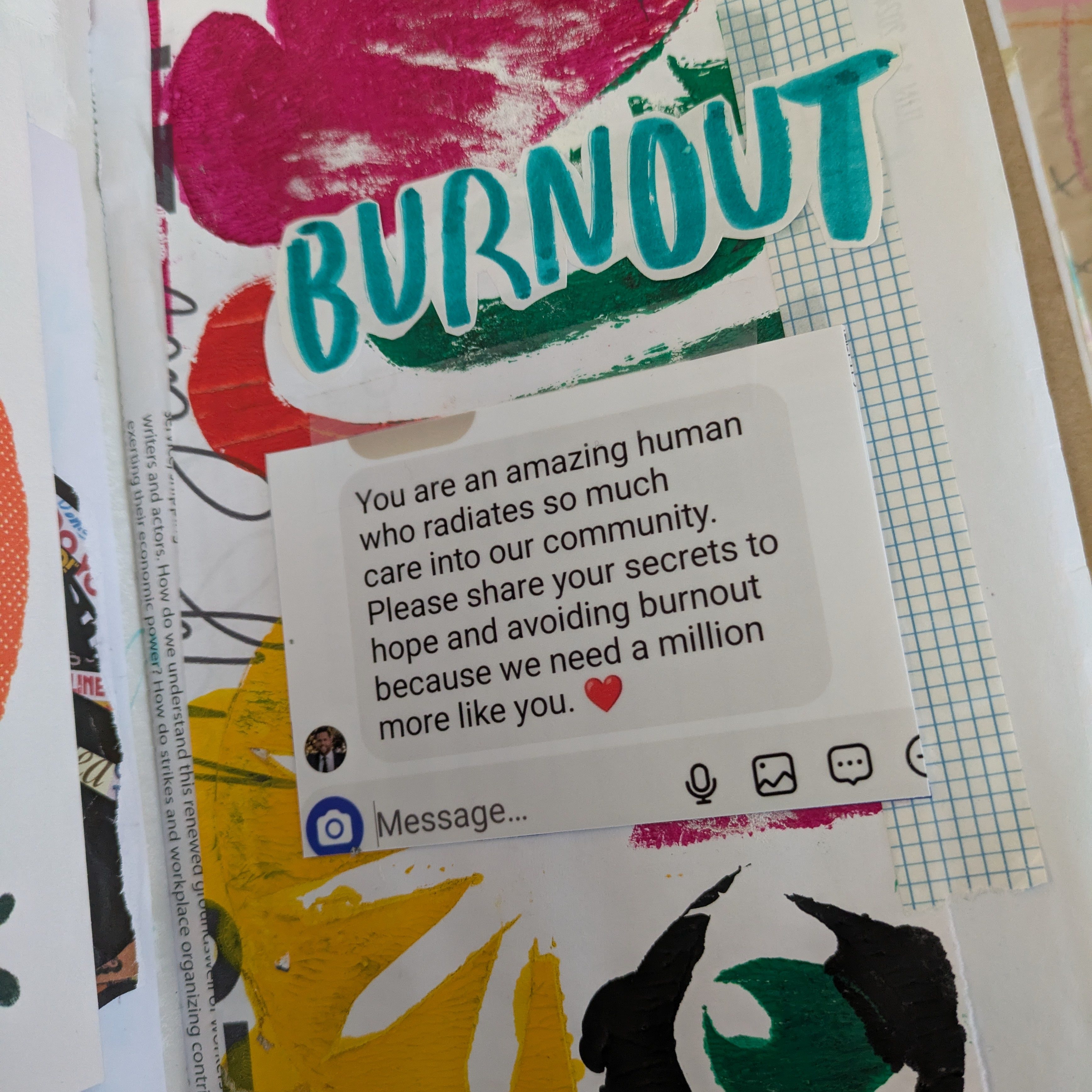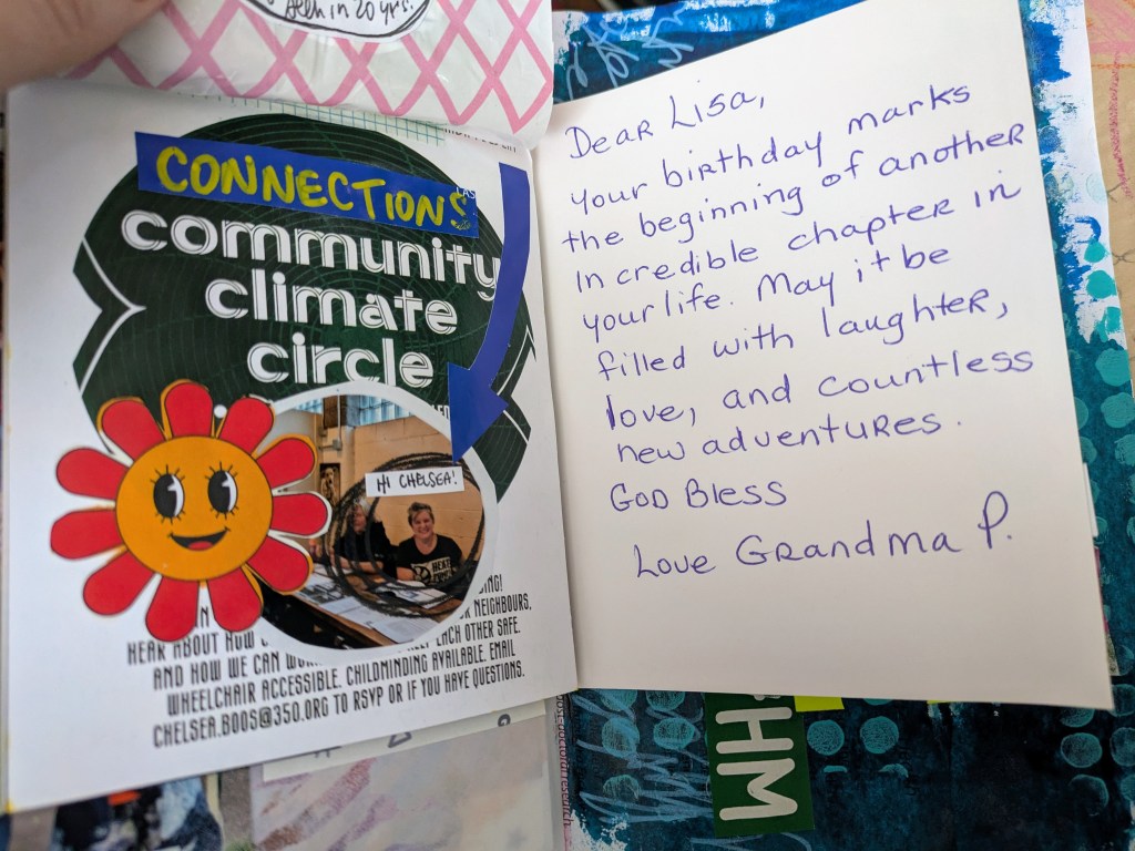 And if you don’t have any handwriting, but want to include a message from another person, you can write or print out a text message. For the page below, I did a screen shot of an instagram message from my city councillor (!) and printed it like I would any photo.
