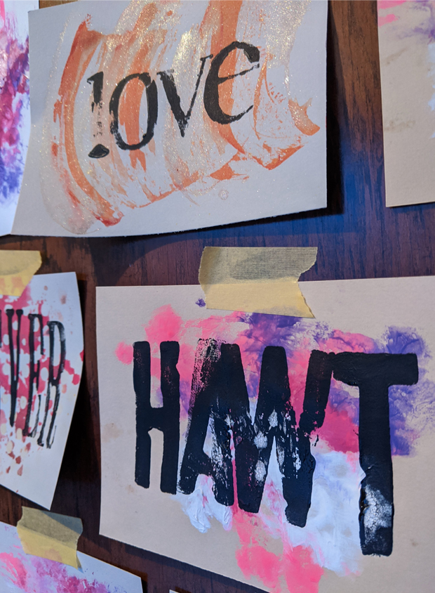 I created Art Night two years ago around my kitchen table because some of the other craft events popping up didn’t represent the type of community I wanted to be part of. Come as you are, catch up with new friends and catch up on some crafting! We’ve seen all types of crafts and art forms – art journals, scrapbooks, cross stitching, knitting, collage, screen printing, stamp carving, and more. Maybe while you’re here you will find inspiration to try a new skill. Or inspiration to finish that project you’ve been working on all of Covid. Whatever it is, you’re welcome here.